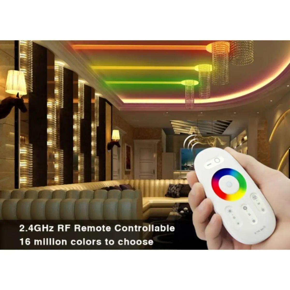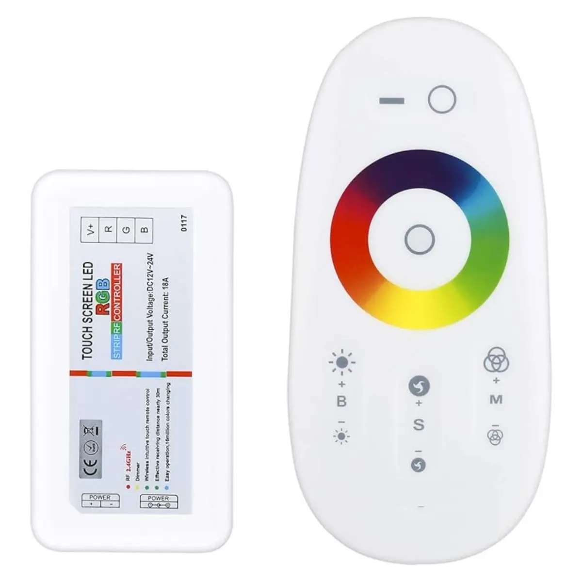 Incluye un control remoto táctil RGB y un controlador LED RGB.