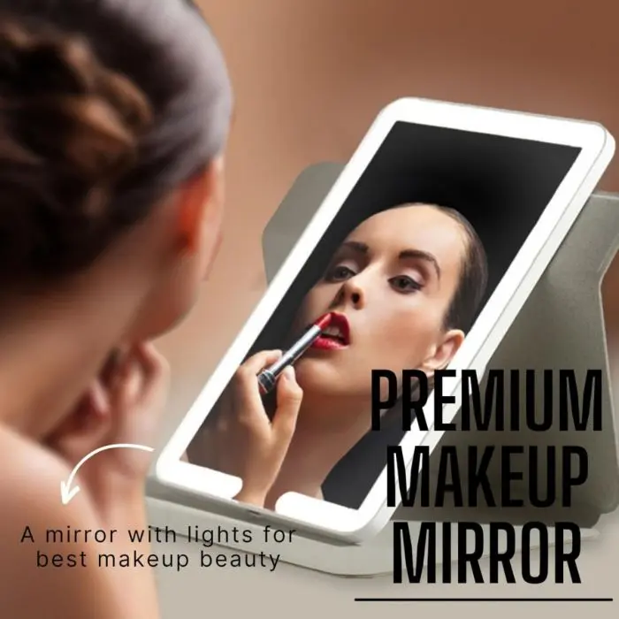 Este espejo con luz LED es ideal para maquillaje, cuidado facial o uso diario, brindando una iluminación ajustable y uniforme que se adapta a distintos entornos y necesidades. Su diseño moderno incluye un soporte giratorio de 360 grados, similar al de las tablets, que permite ajustar el ángulo con precisión.