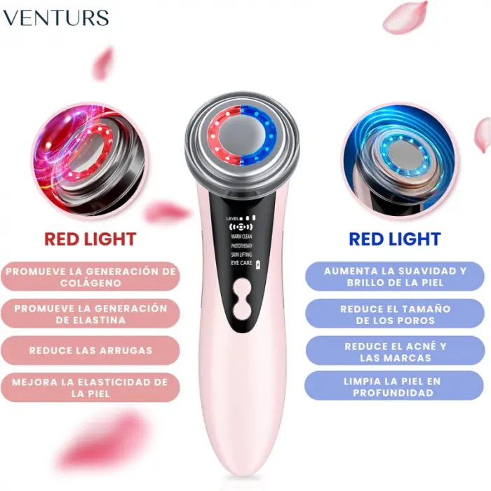 El Masajeador Ultrasónico con Fototerapia Ainhoa es tu aliado de belleza en casa. Combina suaves ondas de ultrasonido con luz terapéutica para activar la regeneración celular, estimular la producción de colágeno y devolverle a tu piel esa firmeza y luminosidad que creías perdida.