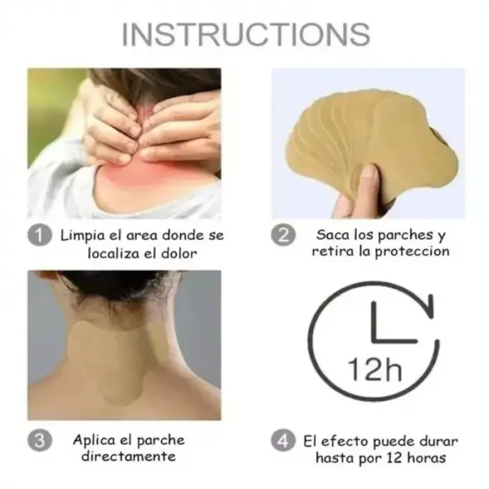 Tiempo de uso: revisá las instrucciones del fabricante; muchos parches brindan alivio por varias horas, pero más de 8–12 h continuas pueden no ser recomendables.