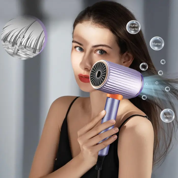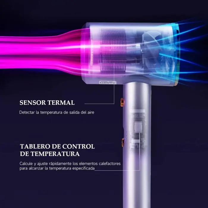 El secador proporciona una potencia de hasta 6000W, asegurando un secado rápido y eficaz del cabello.