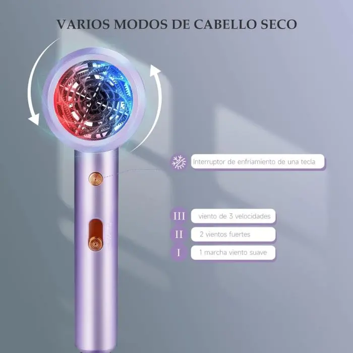 El secador permite a los usuarios elegir entre 3 velocidades diferentes y 3 opciones de temperatura, lo que lo hace adecuado para varios tipos y longitudes de cabello.